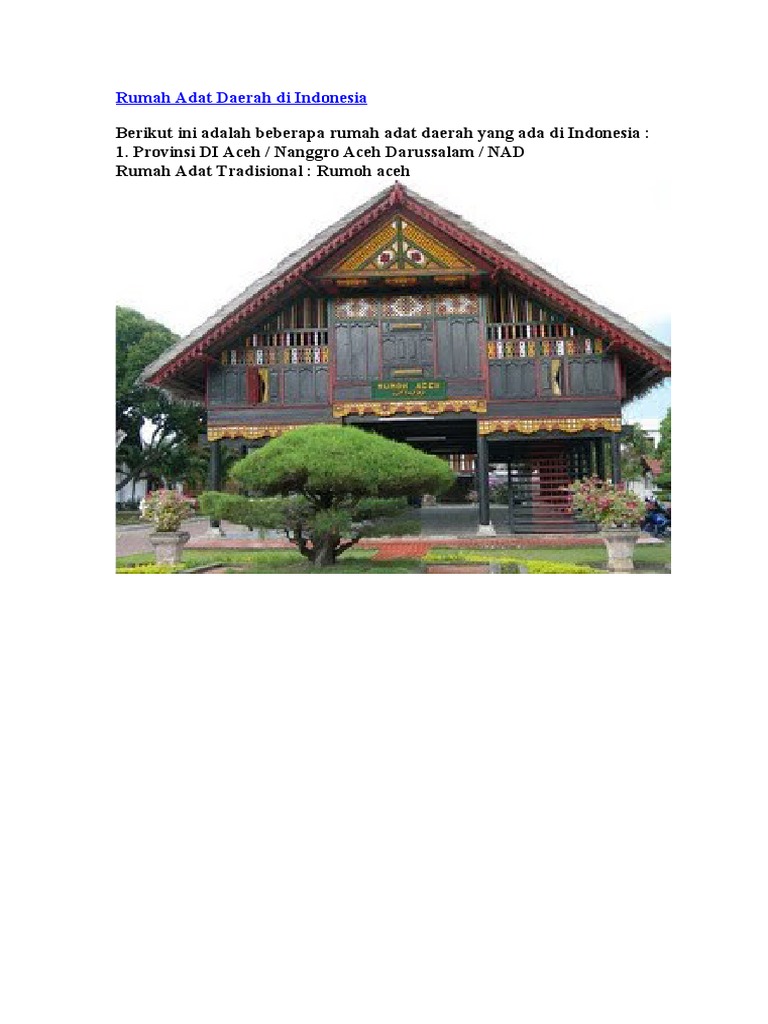 Ulasan mengenai rumah adat dari 35 provinsi di indonesia beserta gambar dan penjelasannya yang bisa anda jadikan sebagai wawasan pengetahuan. Berikut penjelasan detail tentang rumah adat aceh beserta gambar dan keterangannya. Ciri khas dari ini ialah didepan rumahnya terdapat. Ada beberapa hal yang unik dan menjadi ciri khas dari rumah adat aceh ini. 35 rumah adat di indonesia + gambar dan pembahasan lengkapnya 1/5.